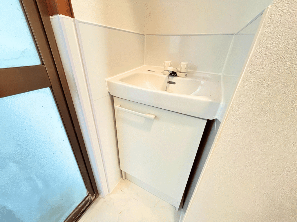 もともと幅500mmのコンパクトな洗面化粧台がついていました。