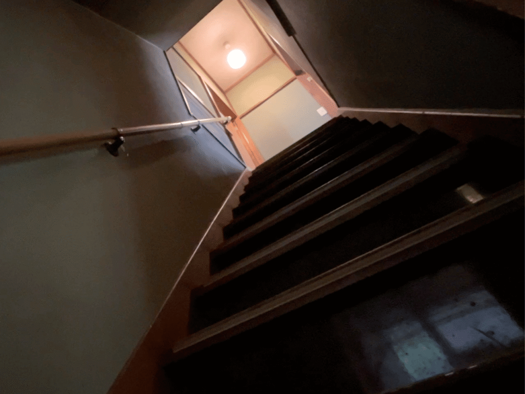 薄暗い階段は、もともと緑色の壁で仕上げられていました。