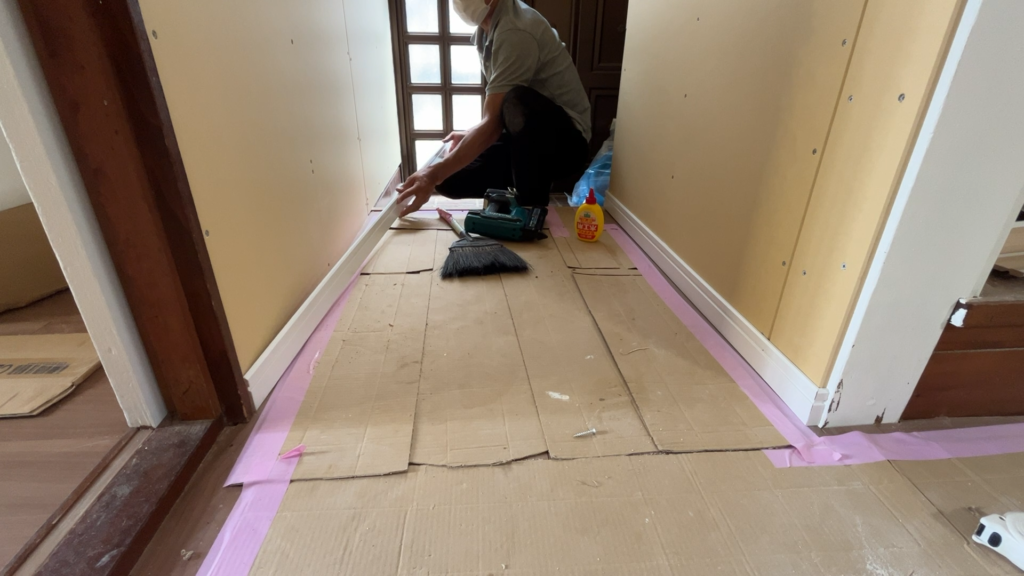 - 2号物件の床にクッションフロアを張った