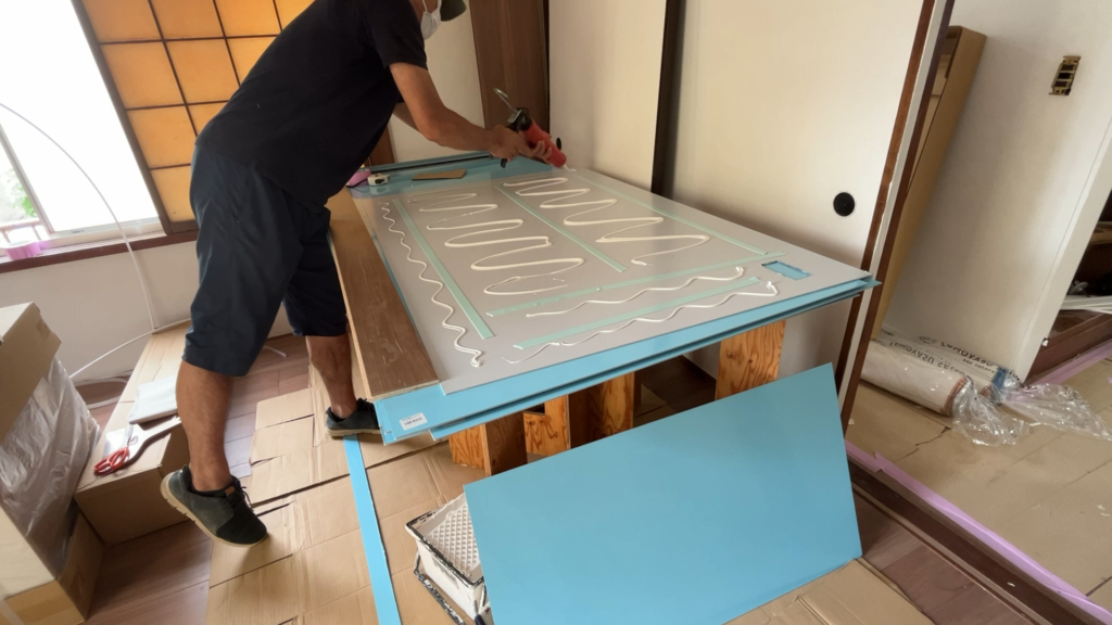 - 2階和室の襖クロス張りが完了。